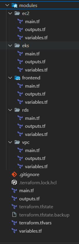 terraform.tfvars 파일(설정들)까지 구성하면 메인 파일들 준비는 완성되었고, 모듈안의 파일도 준비해야 합니다. ( 이 포스트에선 자세한 코드는 생략)